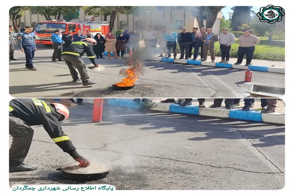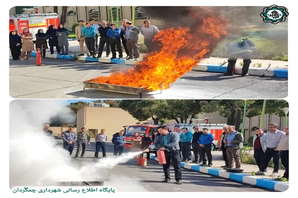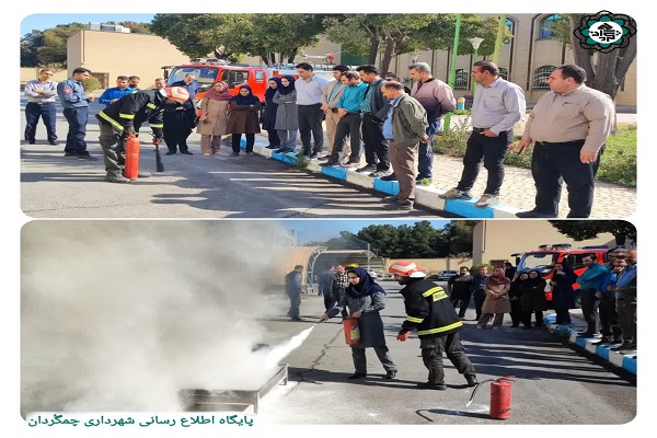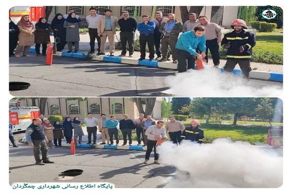 پرسنل اداری شهرداری چمگُردان در هفته پدافند غیرعامل، اطفاء حریق با پودر و گاز را فراگرفتند